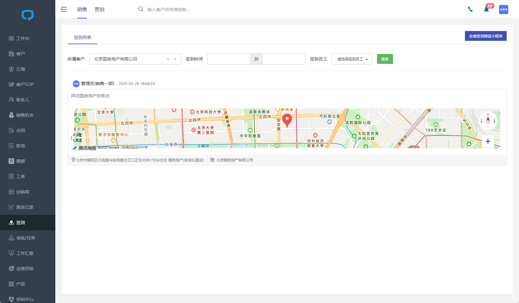 很多管理工作就像企客宝CRM外勤签到功能,只要能方便员工操作,又有助于管理者统计,简单实用,一目了然,就会收到大家的欢迎。