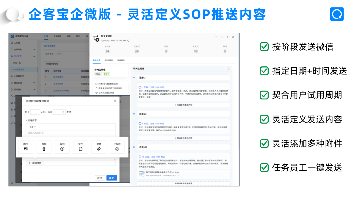 除了SOP功能,企客宝企微版还提供了一系列增强私域运营效果的配套功能: