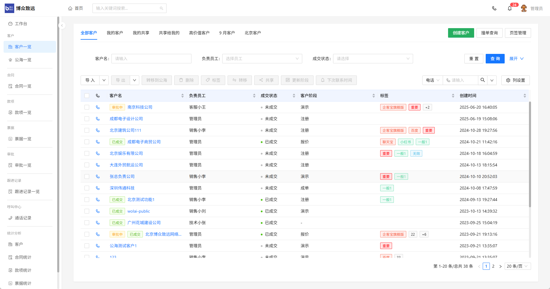 企客宝私有云版客户一览页,重塑销售客户管理新体验